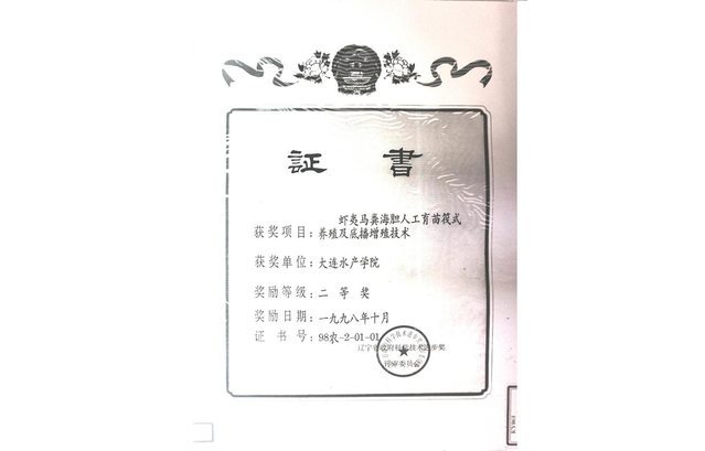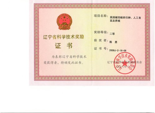 “美国硬壳蛤的引种、人工育苗及养殖”获辽宁省科学技术二等奖
