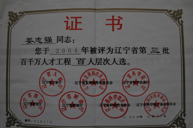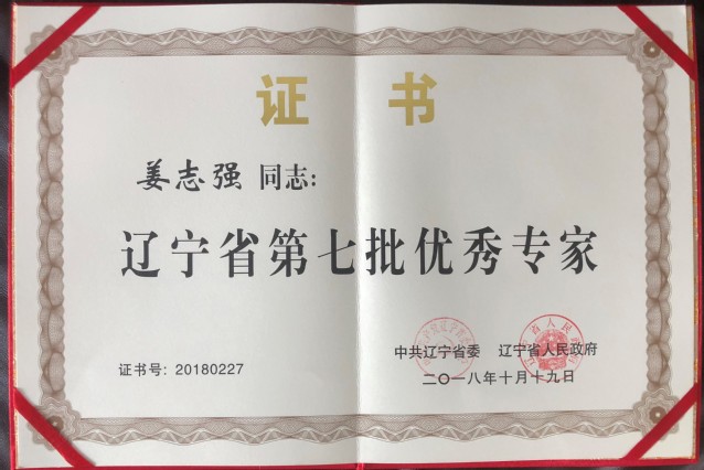 姜志强教授获辽宁省第七批优秀专家