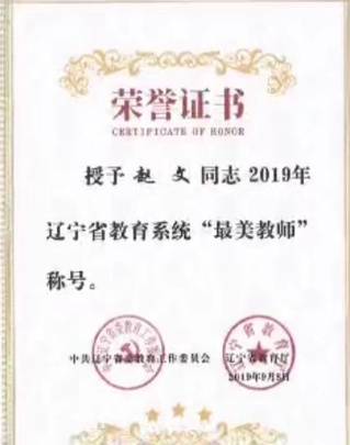 赵文教授获辽宁省教育系统“最美教师”称号