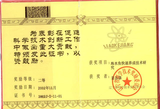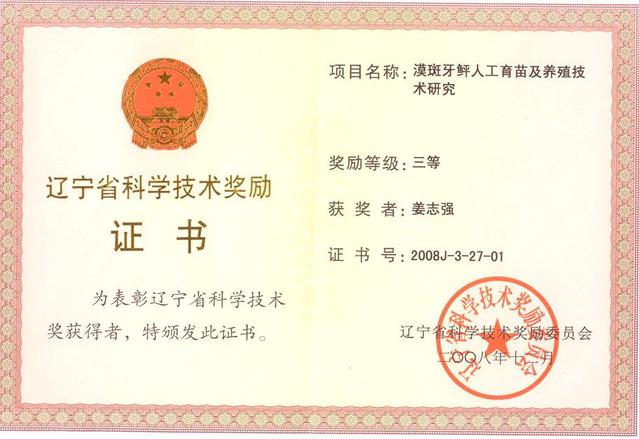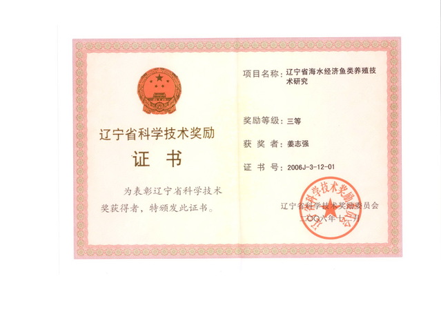 “辽宁省海水经济鱼类养殖技术研究”获辽宁省科学技术三等奖