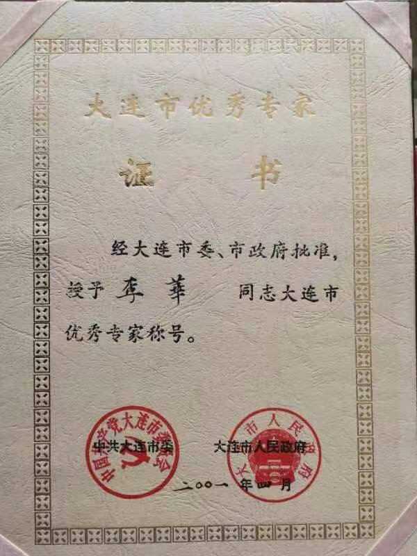李华教授大连市授予大连市优秀专家称号