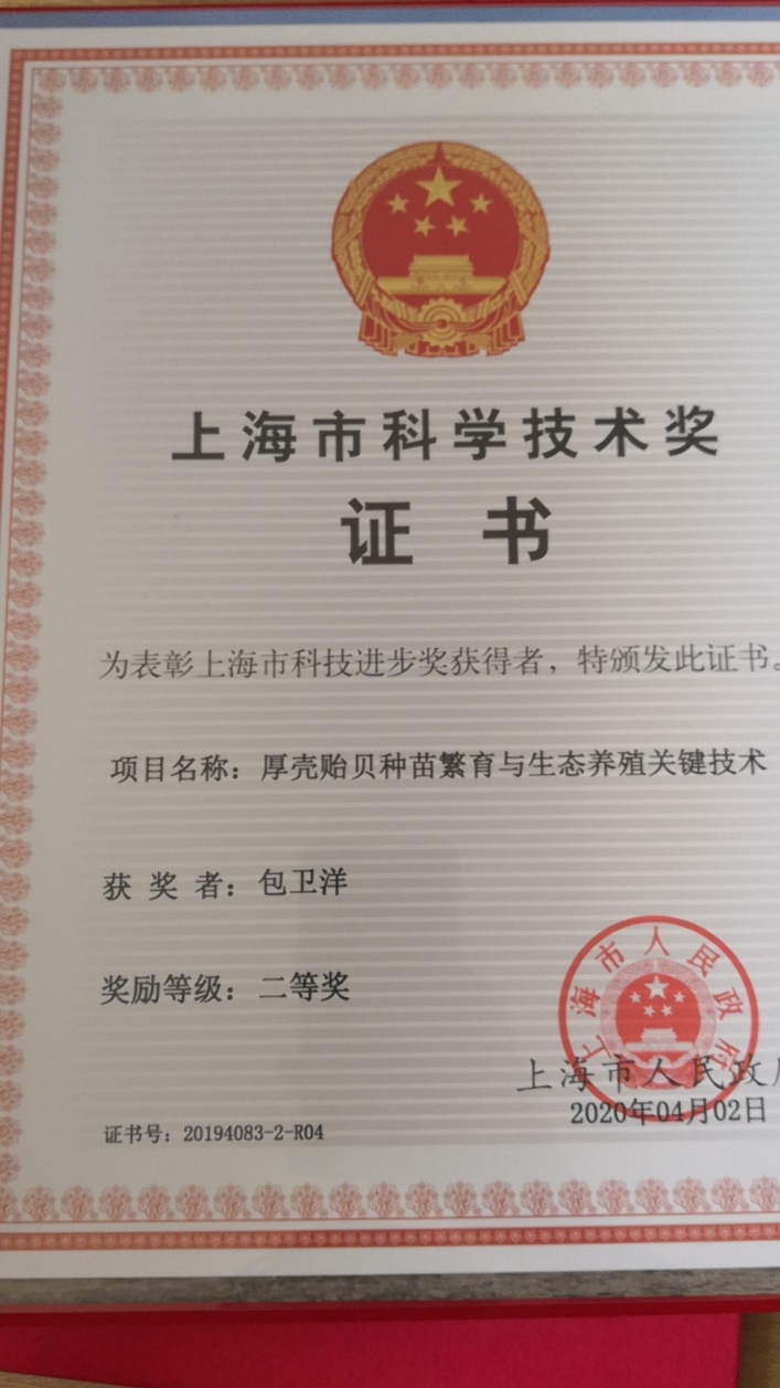 “厚壳贻贝种苗繁育与生态养殖关键技术”获上海市科学技术二等奖