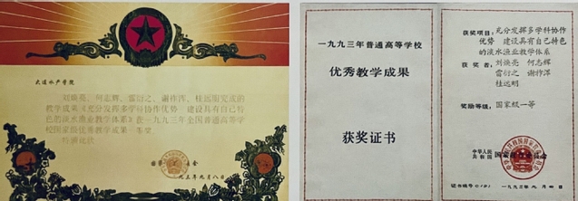 “水产养殖学专业(本科)面向21世纪教学内容、课程体系及人才培养模式改革的研究与实践”获辽宁省教学成果一等奖