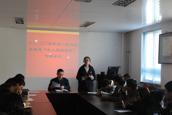 陈曦首先根据学校“读书工程”要求,阐述了“个人阅读清单”的填写要求,指出了大学生读书的必要性,并提出了活动要求。随后学生会主席曹玥布置了“读书工程”建设活动的相关工作。