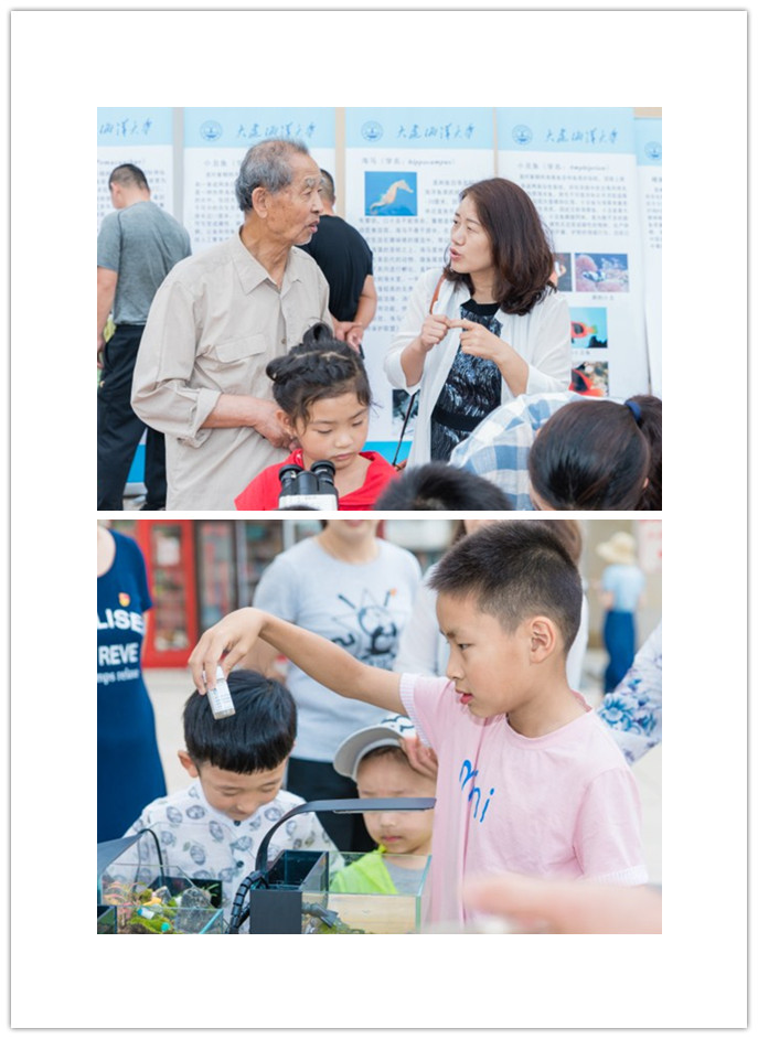 全体教师党员在社区广场,通过展示宣传鱼类学知识、传单普及如何吃好“餐桌上的鱼”、水族造景展示、显微镜下观察水生动物组织切片等,将海洋科普知识带进社区、走进群众。活动现场,不时有群众咨询观赏鱼如何养护、如何鉴别鱼的新鲜度等问题,教师党员们一一详细解答,水族箱前、显微镜旁,围满了充满好奇心的小朋友,教师党员带领他们在显微镜下观察组织切片,并耐心地进行讲解。