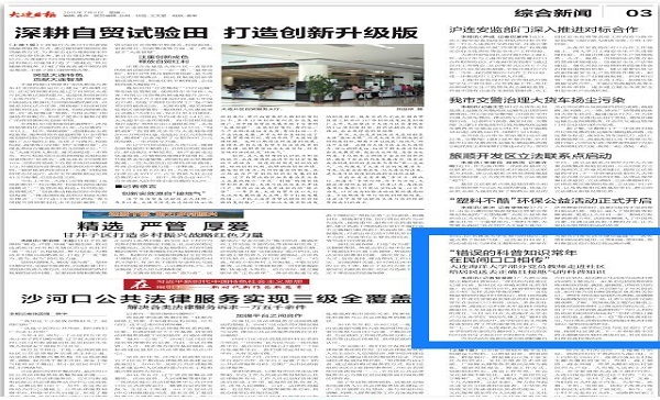 7月9日,《大连日报》03综合新闻版以《“错误的科普知识常年在民间口口相传”——大连海洋部分党员教师走进社区给居民送去正确且接地气的科普知识》为题,报道了我校花都影视 党总支组织党员教师走进社区开展海洋科普知识宣传的义务服务活动。