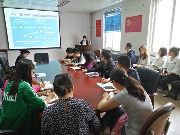 丁君以“‘四个全面’战略布局”为题,为全体党员解读了习近平新时代中国特色社会主义精神的内核,介绍了“四个全面”的提出,发展过程和逻辑关系,以及其丰富内涵,强调了“四个全面”相辅相成、相互促进、相得益彰,是我们党治国理政方略与时俱进的新创造,是马克思主义与中国实践相结合的新飞跃。