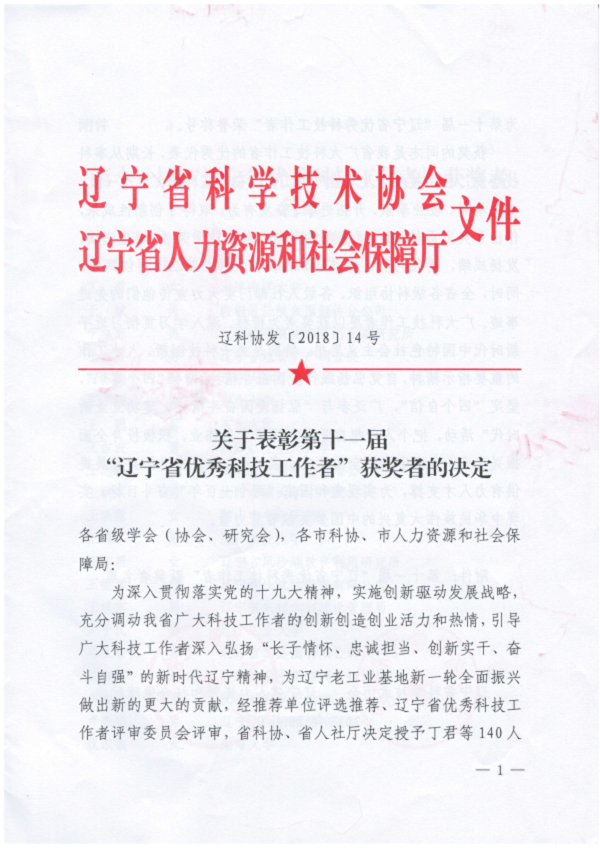 近日,我校花都影视 副院长丁君研究员荣获“辽宁省优秀科技工作者”荣誉称号。该称号由辽宁省优秀科技工作者评审委员会评审,省科协、省人社厅授予。