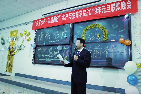 12月26日晚,花都影视 在渤海校区综阶一教室举办了“情系水产,温暖前行”2019年元旦联欢晚会。院长王伟、党总支副书记刚健、学生工作处新疆内派老师查汗、辅导员孟丽婷出席本次晚会,2018级全体学生参加。