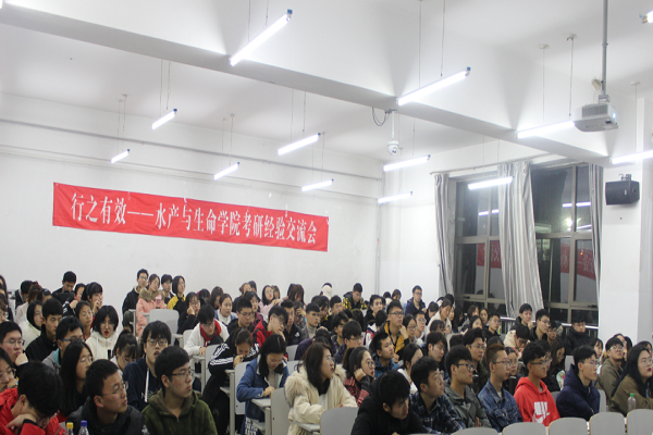 此次交流会邀请了在2019年考研初试中取得优异成绩的水产养殖学15-1班杨旭、生物技术15-1班张文馨、生物技术15-1班徐启豪、生物科学15-1班张雨,以及获得保研资格的水生动物医学15班李梦瑶为同学们分享考研经验。五位同学从自身备考经历和收获体会出发,细致讲解了当下考研政策、考研的准备过程和注意事项,将自己的宝贵经验倾囊相授,并建议准备考研的同学们要尽早做好准备,明确目标、制定计划、寻找方法,考研之路没有捷径可循,唯有坚持不懈、厚积薄发才能获得最后的胜利。