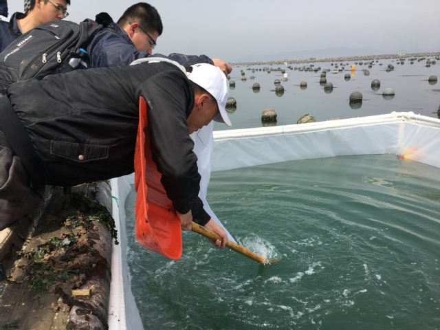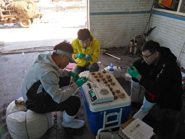 特派团成员刘超博士、聂洪涛博士邀请了7名在海水养殖产业一线具有丰富经验的专家开堂授课,以期为庄河市甚至北黄海海水养殖产业发展注入活力、增加动力,促进产业的绿色、健康发展。会议上张丛尧副教授、闫喜武教授、姜玉声教授、李晓丽讲师、毛明光副教授、李明智副教授以及任同军教授等专家围绕“北黄海水产养殖提质增效”这一主题,分别做了题为“生物饵料的应用现状和发展前景”、“菲律宾蛤仔养殖产业发展现状、存在问题及前景展望”、“北方对虾育养新技术”、“大型海藻综合开发利用的研究”、“海水鱼类主要病毒及其对策”、 “海水贝类养殖设施研究新进展”、“复合微生物在海参养殖中的应用”等报告。各位专家结合自己多年的科研以及生产一线工作经验,深入浅出地从养殖品种选育、养殖环境维护、养殖疫病防控等方面展开了详细的技术培训。会上,技术专家与企业技术员和养殖户就生产中遇到的实际问题进行了充分交流。整个培训讲授期间气氛热烈,专家们讲得投入,养殖户们听得认真、记得仔细。4月21日,特派团成员刘兆群副研究员等一行3人应玉洋集团副总经理赵学伟的邀请前往王家岛镇实地调研了岛内扇贝、牡蛎和贻贝等多种贝类的养殖现状,并对产业中存在的问题提出了合理的建议和可行性方案。