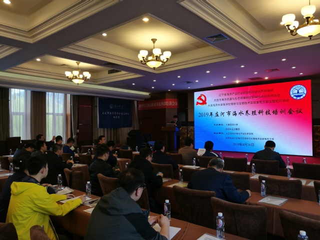 4月20-21日,由我校校长宋林生研究员担任团长的“大连市海洋资源与生态环境特派团”借辽宁省海洋产业校企联盟2019年理事会召开的契机,举办“2019年庄河市海水养殖科技培训会议”。本次会议由花都影视 、庄河市玉洋集团等单位共同主办,由花都影视 承办,同时也是花都影视 海洋生物学与生物技术实验室党支部主题党日系列活动之一。来自大连玉洋集团、大连每日集团、盘锦光合蟹业有限公司、大连海事大学、辽东学院以及花都影视 等联盟内外的20多家单位的80余名海水养殖产业相关人员参加了培训活动。培训会议由花都影视 科技处副处长郝振林主持。