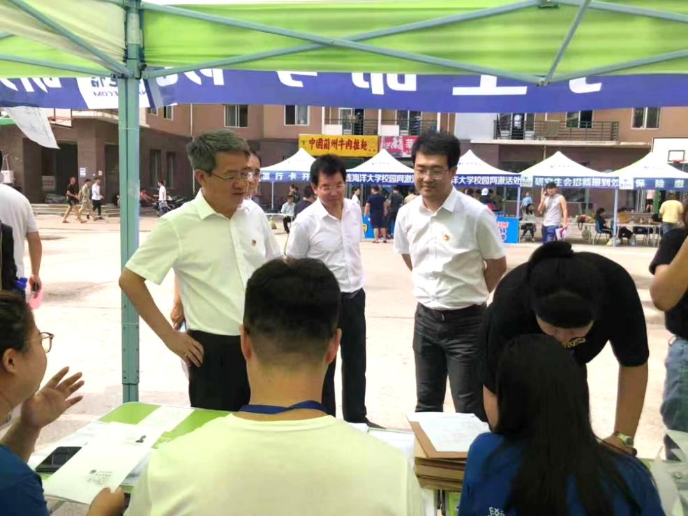 校党委书记姚杰、校长宋林生亲临花都影视 迎新现场指导工作并与新生亲切交谈,花都影视 党总支书记邱金英、党总支副书记兼纪检委员衣启麟介绍花都影视 迎新工作开展情况。