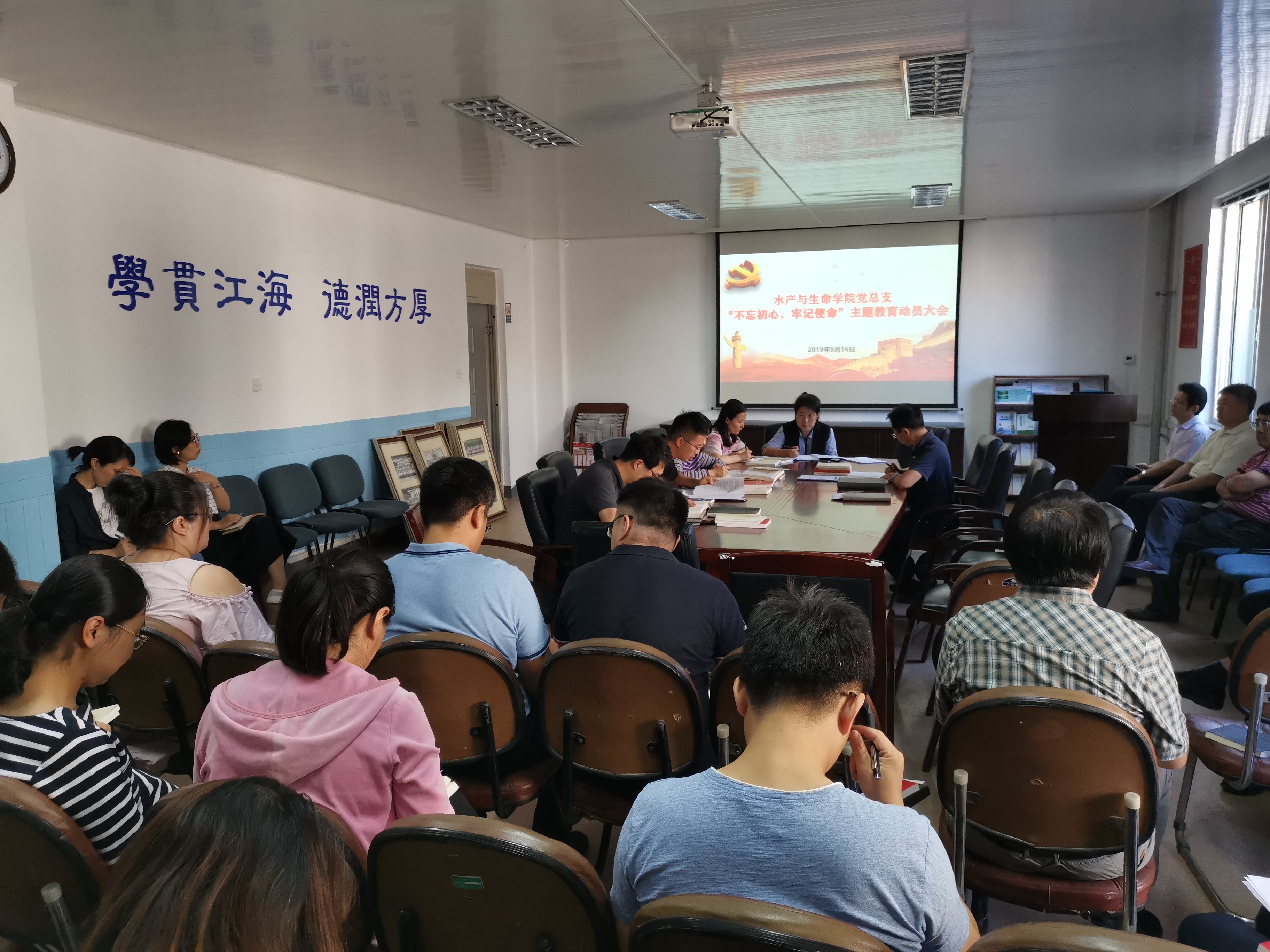 9月16日,花都影视 党总支“不忘初心、牢记使命”主题教育动员大会在学院党员活动室举行。会议由学院党总支副书记、学院党总支“不忘初心、牢记使命”主题教育领导小组副组长张家润主持,学院党总支委员、各党支部书记、全体教工党员参加会议。