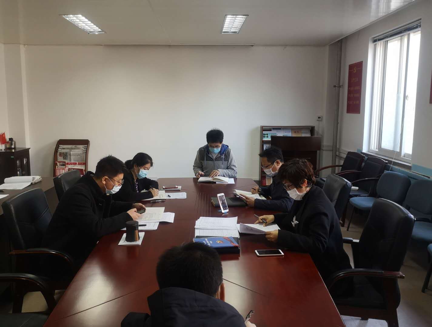 4月20日,花都影视 党总支召开2020年4月份理论学习中心组专题学习会议,依托学习强国APP,学院党总支理论学习中心组成员、各党支部书记在学院党员活动室开展了线下、线上视频会议相结合的学习会议,会议由学院党总支书记邱金英主持。