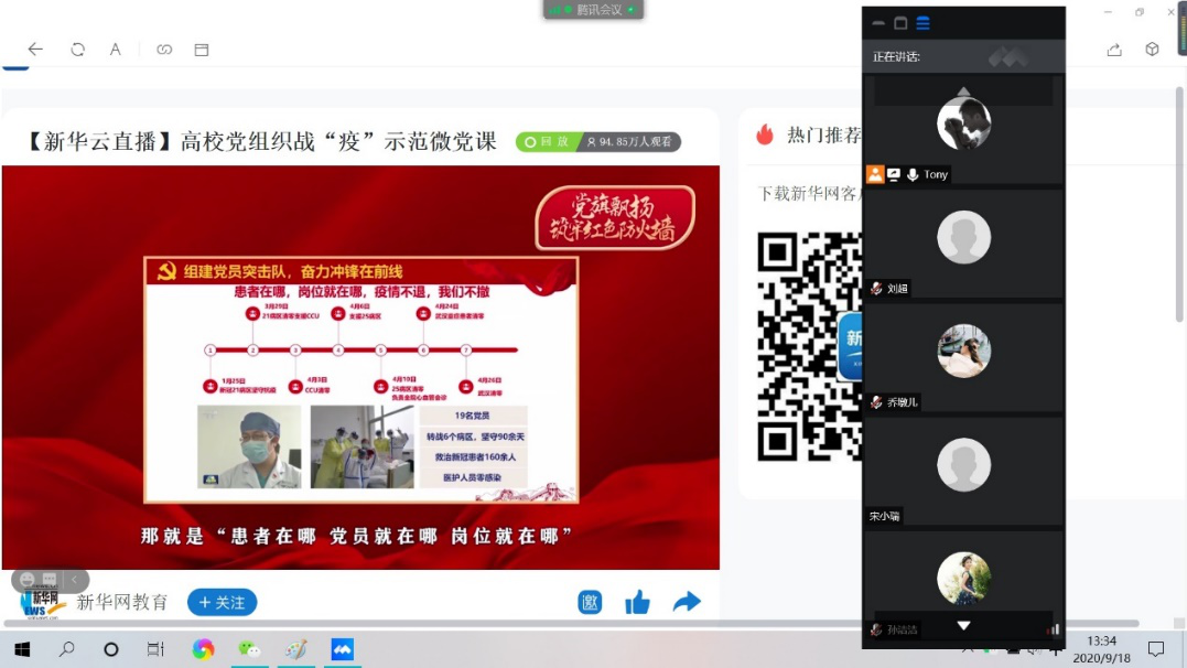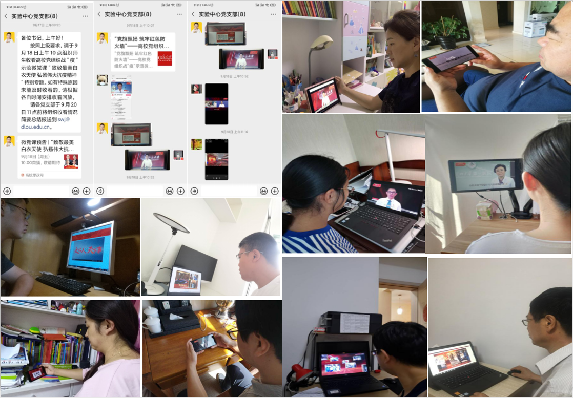 9月18日,教育部教育部高校党组织战“疫”示范微党课”致敬最美白衣天使 弘扬伟大抗疫精神“特别专题开讲,花都影视 党总支持续做好宣传、组织工作,组织各个党支部和全体党员通过手机、电脑等方式采取集中、线上会议或自主等多种形式及时收看学习。 全体党员共同学习了由中山大学、北京大学、武汉大学、中南大学、兰州大学等6所高校围绕白衣天使一线讲述的战疫故事。