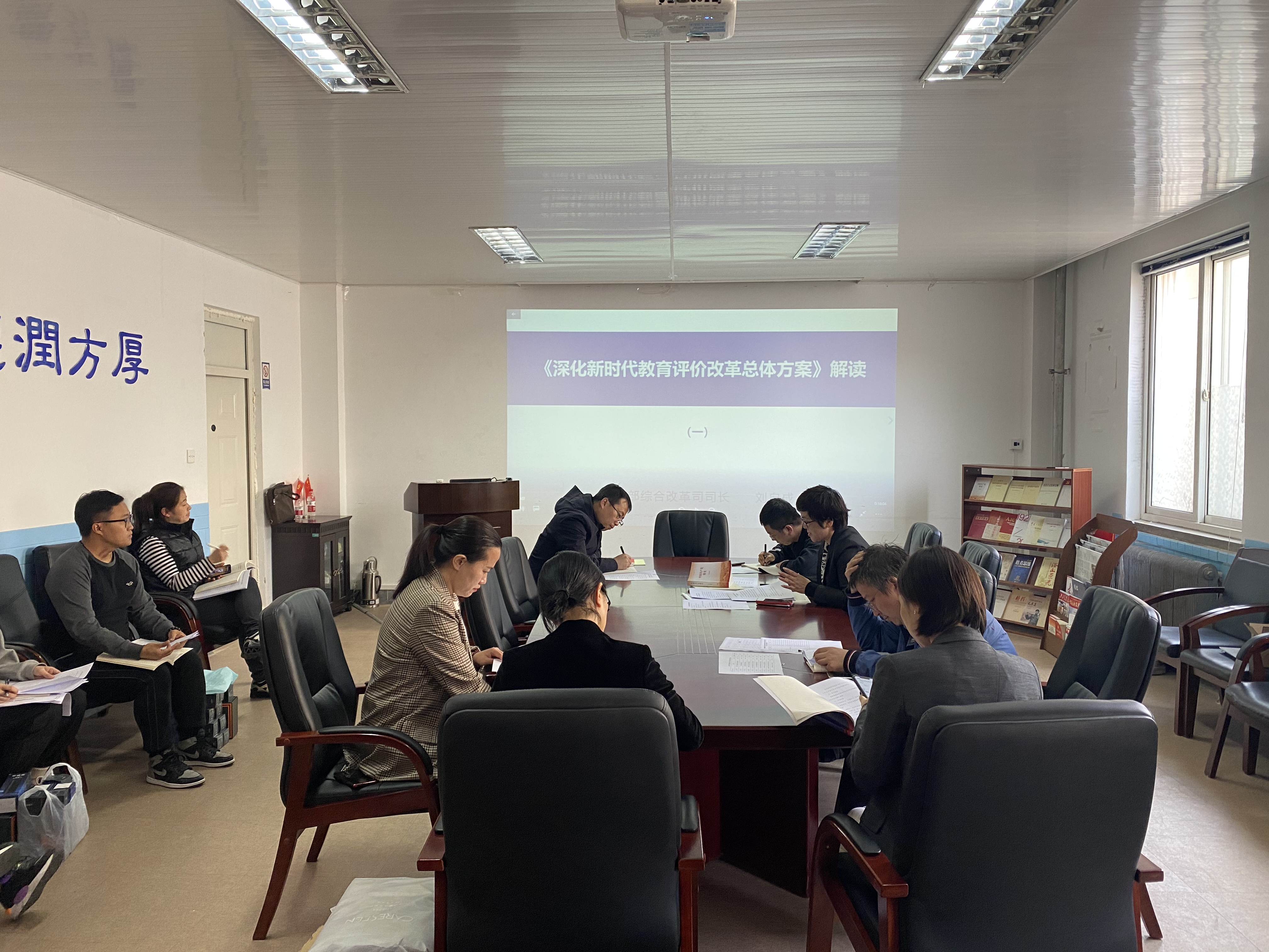4月21日上午,花都影视 党总支在党员活动室召开了《深化新时代教育评价改革总体方案》专题学习会议,总支委员、各党支部书记参加会议,会议由党总支书记邱金英主持。