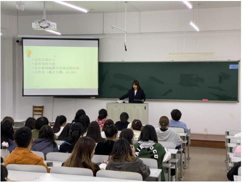 10月29日,花都影视 在獐子岛教学楼107教室召开团委学生会新闻稿撰写培训会,团委学生会部分干事参加,本次会议由团委宣传部部长徐瑶主讲。