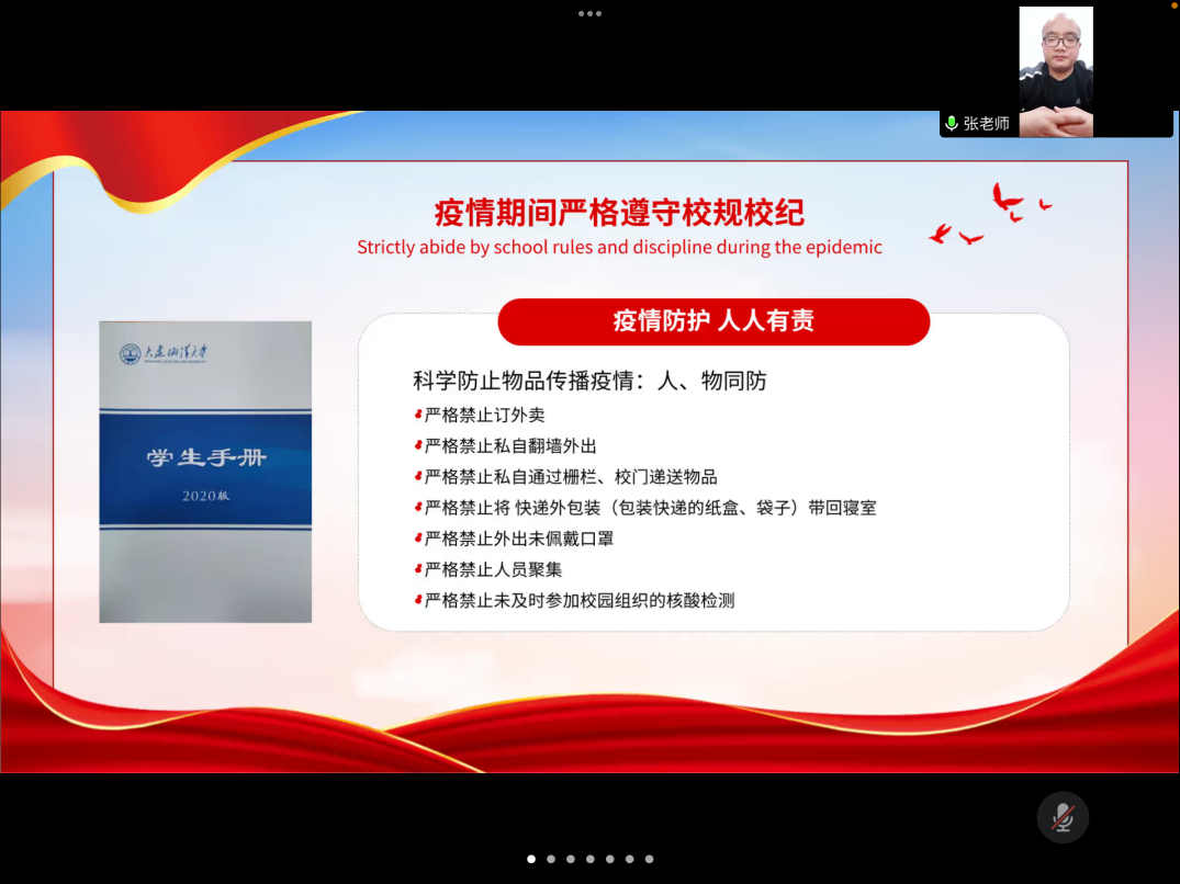 3月29日,为进一步落实学校疫情防控工作要求,学院召开线上“科学防控疫情,守护平安校园”主题年级会。会议由2021级辅导员张新老师主持,全体2021级学生参加。