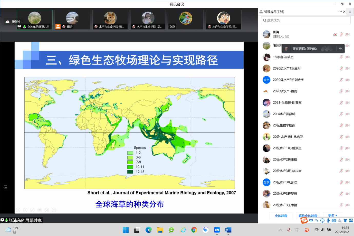 4月12日下午,由花都影视 主办、捕捞学学科及海洋渔业科学与技术教研室负责具体组织的建校70周年系列学术讲座第一场学术报告线上顺利召开,报告会邀请了中国海洋大学博士生导师张沛东教授作了题为“海底森林:牧之基础”的学术报告。副院长(主持工作)丁君、捕捞学学科全体教师、全校相关专业的教师、研究生及本科生近200余人参会,会议由捕捞学学科负责人田涛教授主持。