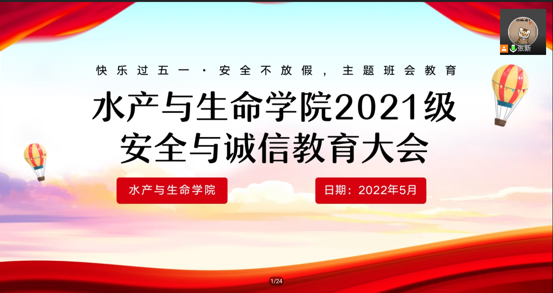 5月1日,学院召开“2021级安全与诚信教育”主题线上年级会。2021级全体学生以寝室为单位全体参加,会议由辅导员张新主持。