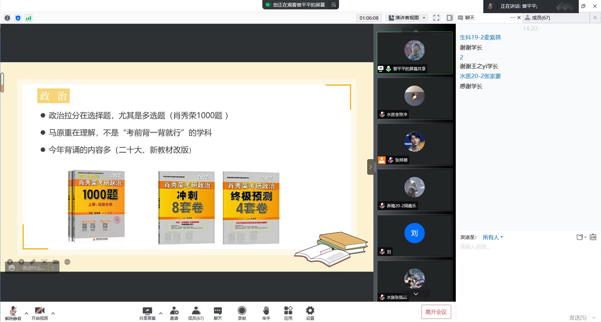 会上,考研上岸的分享嘉宾们围绕考研院校和专业的选择、考研计划和准备、考研困难克服、考研技巧、上岸心得等话题向大家做了详细的介绍,悉心分享了自己的考研经历与心得体会,并结合自身的经历分享备考经验,从各方面向准备考研的同学给予指导。