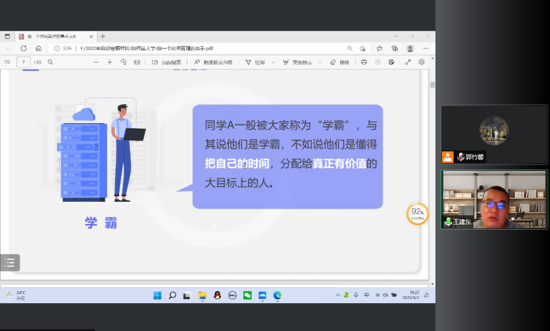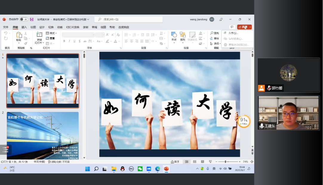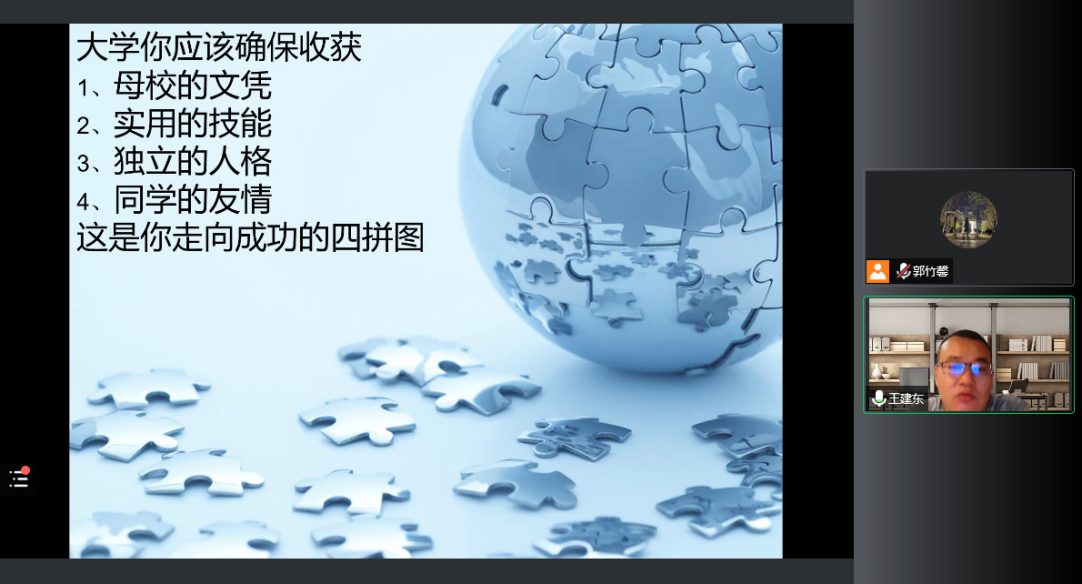 9月7日,学院在线上召开2022级新生主题教育讲座。学院团委书记王建东主讲,辅导员郭竹馨及2022级全体新生参加。
