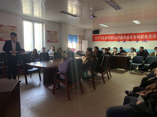 3月15日下午,广州利洋水产科技股份有限公司在花都影视 会议室召开“热爱水产,把握未来”专场就业洽谈会。参加就业洽谈会的有利洋公司人事经理林业成、刘阳,学院党委副书记王建东、2019级辅导员张桐洁接待了利洋公司一行人员。