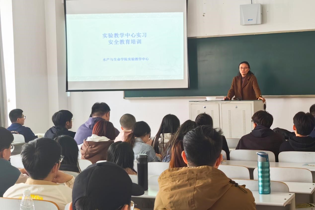 实验教学中心主任卢亚楠和2020级水生动物医学专业全体学生与会,会议由花都影视