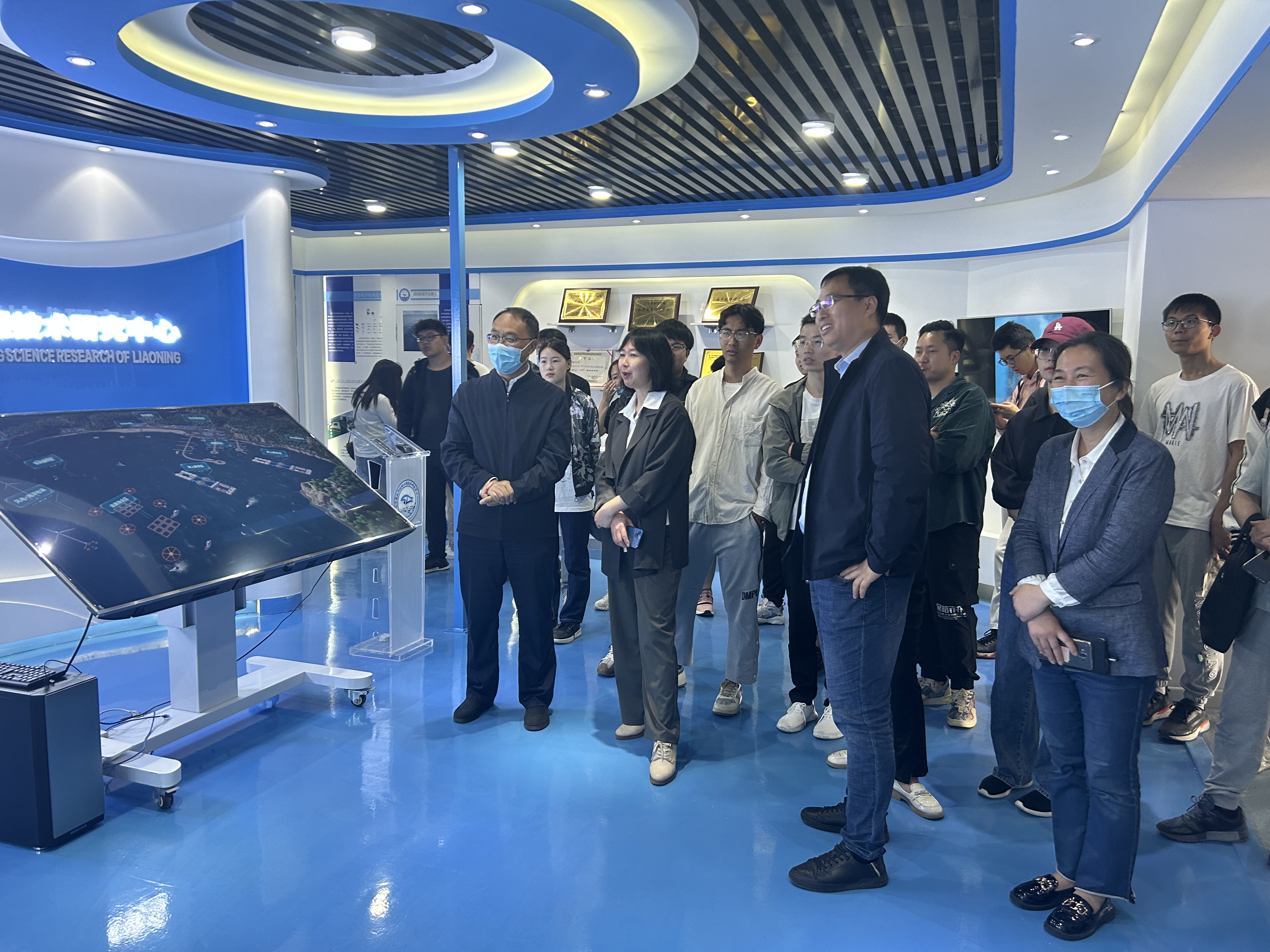 科普活动中,辽宁省海洋牧场工程技术研究中心团队吴忠鑫老师首先带领大家参观了学校的辽宁省海洋牧场工程技术研究中心,观看了海洋牧场介绍视频,详细了解了现代化海洋牧场的科学理念以及海洋牧场全产业链工程技术体系情况,参观了学校海洋牧场科技成果和海洋牧场工程技术调查研究相关仪器设备等,并介绍了未来海洋牧场建设的战略规划设计和新技术、新装备研发情况。