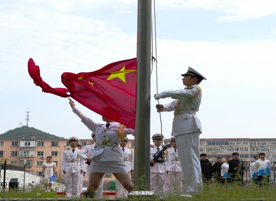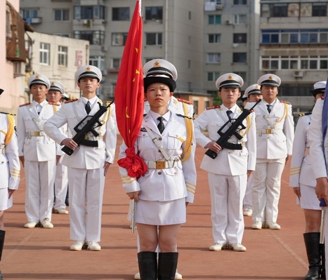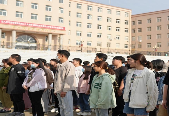 在嘹亮的国歌声中,鲜艳的五星红旗冉冉升起。百余名学生肃立注目、高唱国歌,深情表达对伟大祖国的热爱和自豪。随后,学生代表辛赫炎发表演讲。号召同学们要志存高远、忠于祖国,努力做新时代具有远大理想和坚定信念的爱国者;要敢于担当、勇于奋斗,努力做新时代具有责任意识和创新精神的建设者;要勤奋学习、锤炼身心,努力做新时代具有过硬本领和高尚品格的接班人。