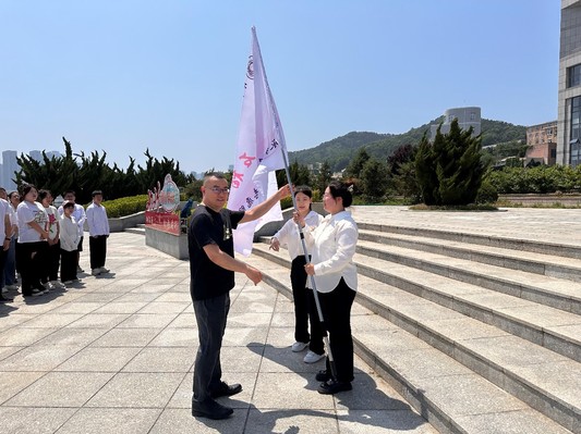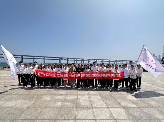 7月7日,花都影视 在獐子岛教学楼前举办2023年暑期社会实践活动启动仪式暨志愿服务团队授旗仪式。学院党委副书记王建东,各年级辅导员以及全体志愿者参加。