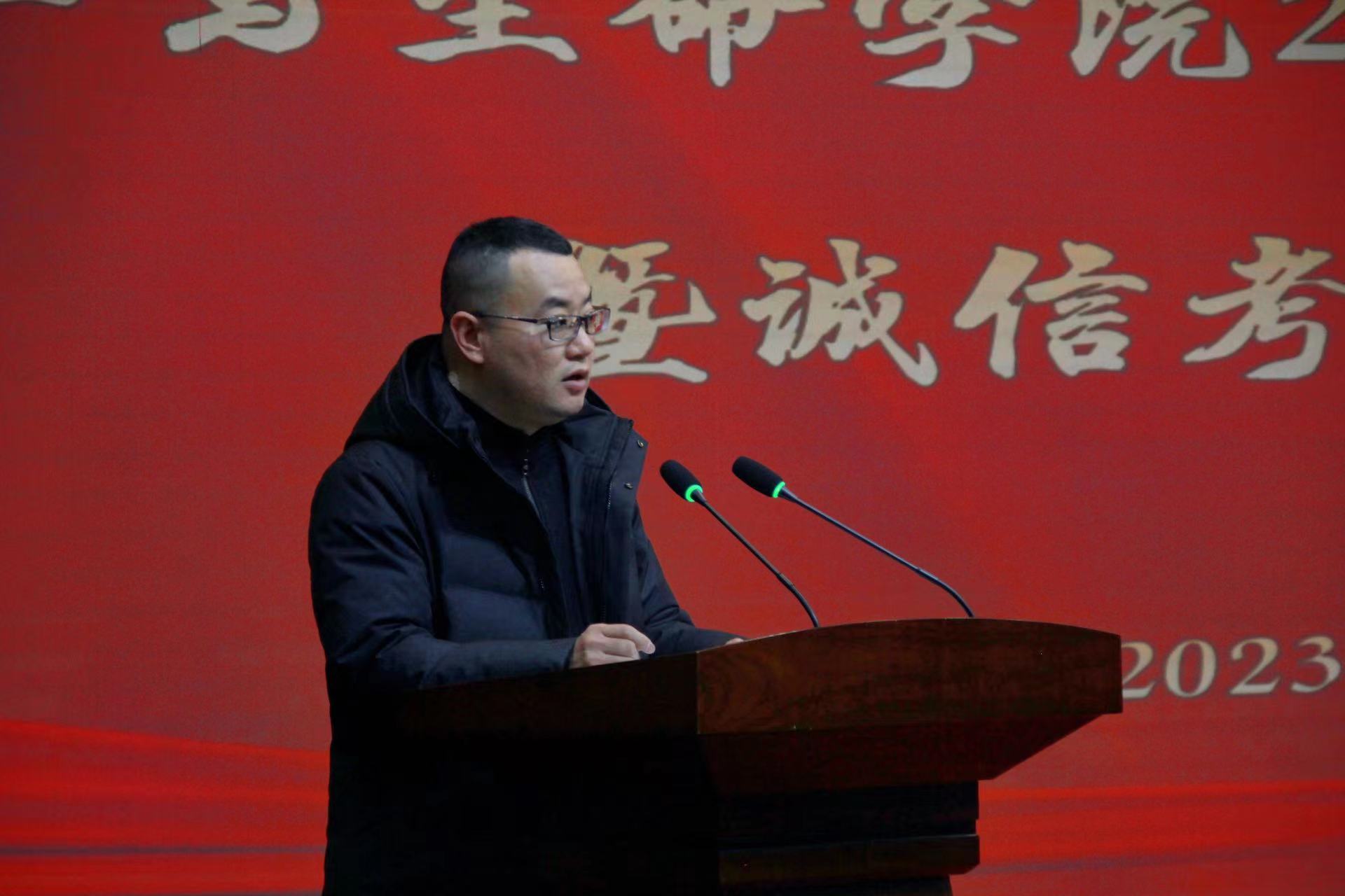 “一研为定,定为研一”,为增强考研学子的备考信心,缓解备考压力,鼓舞考研士气,12月12日,花都影视 于图书馆报告厅举办2023年考研冲刺动员暨诚信考试教育大会,会议由辅导员尤奇正主持,学院党委副书记王建东、辅导员孟丽婷、李明静及2020级全体考研学生参加。