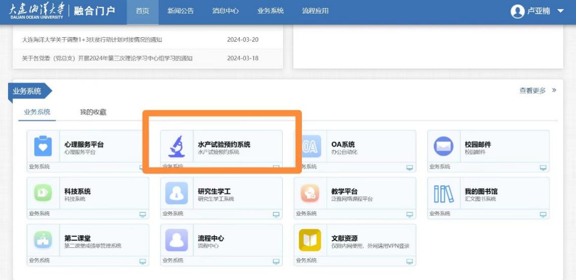 (1)首 页 ---融合门户---扫码进入---业务系统“水产试验预约系统”