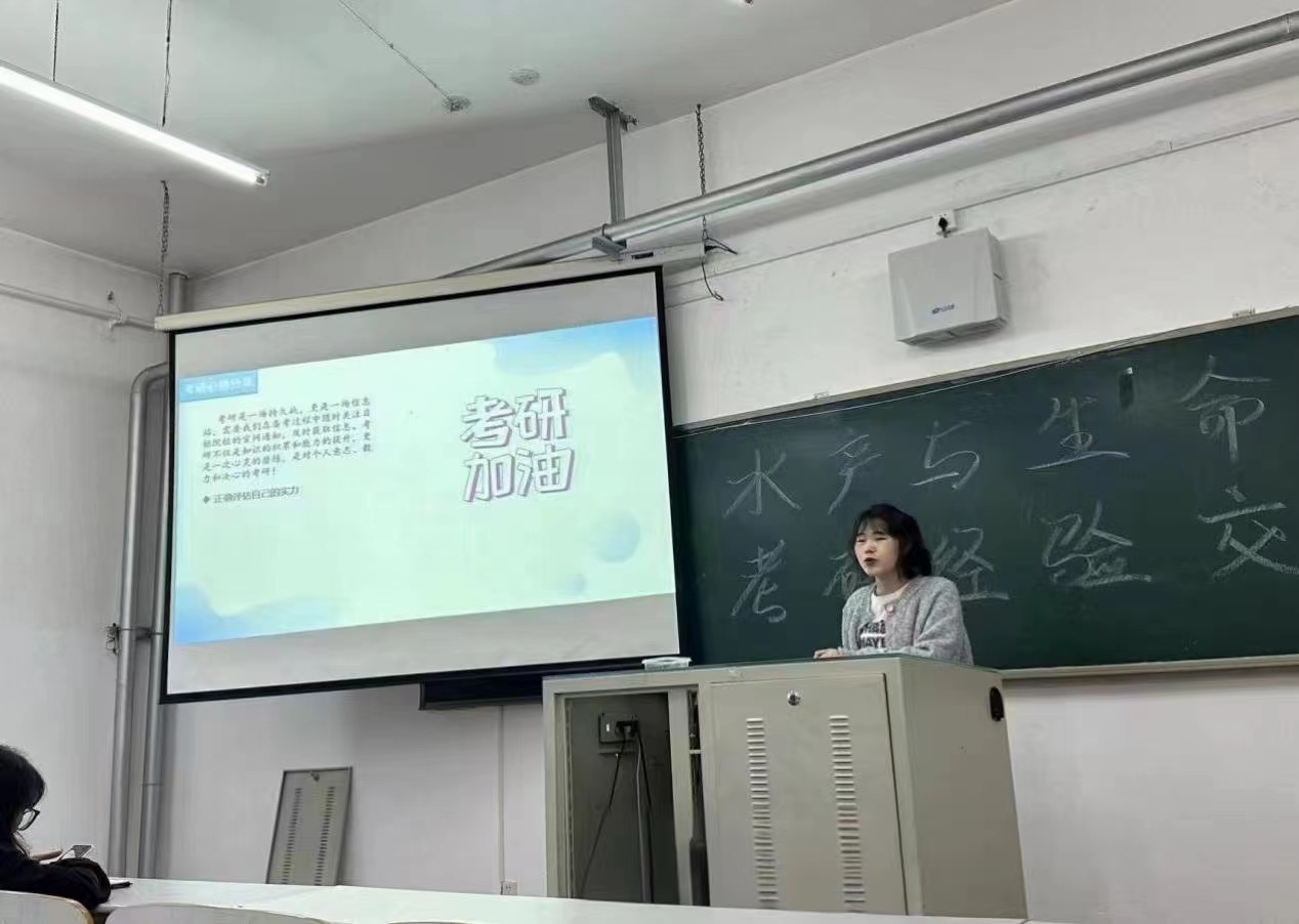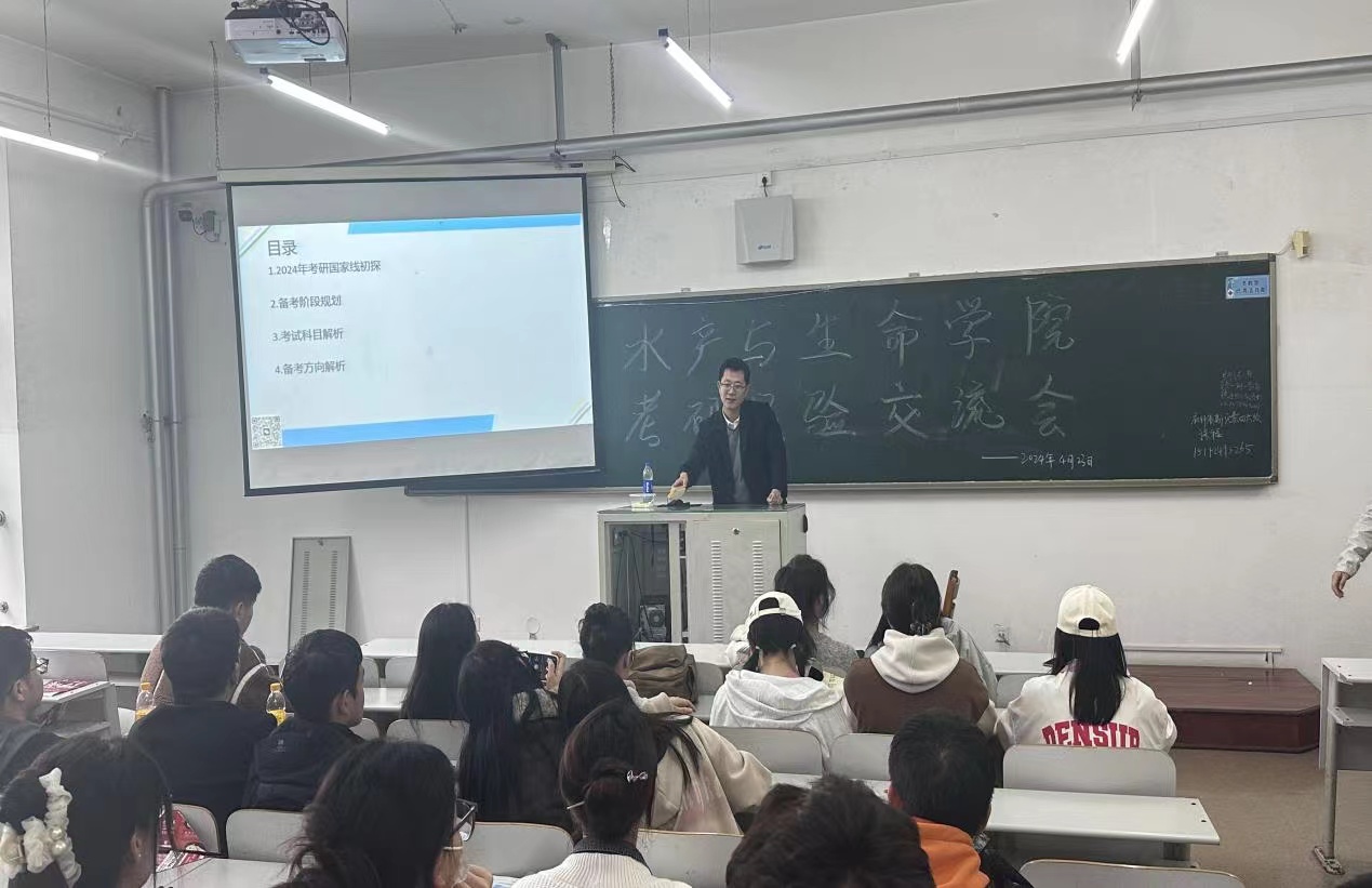 会上,主讲嘉宾结合水产专业的考研现状,详细介绍了考研的报名流程、注意事项以及备考方法。李绍凡、张玉玮、余壮志、邓雪梅同学结合自身的考研经历,分享了备考过程中的经验教训,提供大量考研的资料和网站供同学们参考,既有最新的政策解读,也有成功的考研经验分享,为同学们的备考之路提供了有力的支持。之后的互动环节成为现场的高潮,同学们纷纷提问,与嘉宾和同学们展开深入地交流,无论是关于备考策略的调整,还是心理调适的技巧,嘉宾们都耐心细致地一一解答,现场气氛热烈而有序。