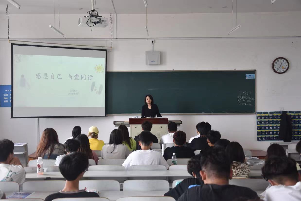 会上,孟丽婷首先向同学们讲述感恩自己的意义和价值,让同学们正确地意识到感恩自己在日常生活中的重要性。其次,孟丽婷向同学们介绍如何在心理层面认知自己,接纳自己,用爱心对待自己,同时也提醒同学们感恩自己以前的努力、坚强和热爱。最后,孟丽婷讲述在未来的生活中应如何持续地感恩自己并不断进步,她呼吁同学们要保持积极的心态和乐观向上的心理品质,并鼓励同学们要关注自己的心理健康状态,学会倾听和表达自己的观点和感受。