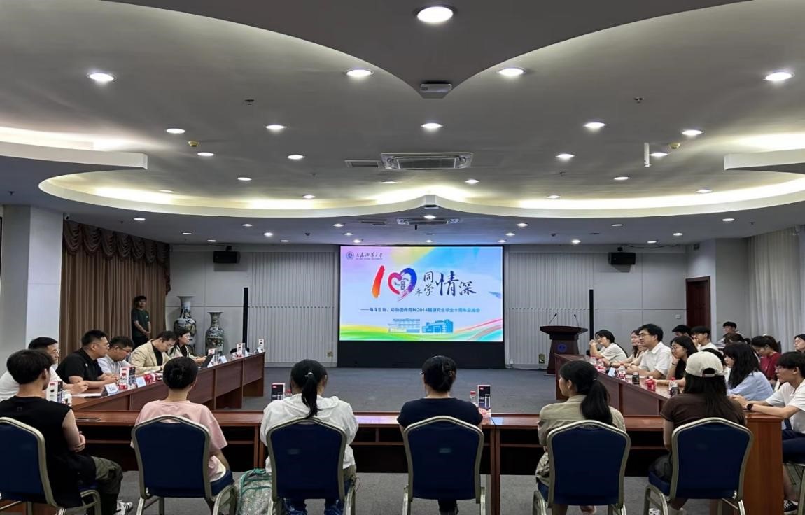座谈会上,衣启麟代表学院表达了对校友们返校的热烈欢迎,介绍了学院发展概况以及研究生培养情况,并回顾了十年来母校的发展历程及近年来的突破性进展,他希望校友们持续关注学院发展,共同书写母校发展更辉煌的篇章。2014届动物遗传育种专业毕业校友、日本冲绳科学技术大学海洋气候变动研究室李成泽博士进行了线上视频祝福,江苏海洋大学副教授姬南京博士等校友们也分别介绍了目前的工作情况,表达了感恩母校老师们的辛勤栽培,怀念同学间的真挚情谊。在交流研讨环节,校友们结合在不同工作领域的心得收获,就学院未来发展、人才培养与就业等方面工作建言献策,同时针对在读研究生的成长和学业困惑,从职业规划设计、出国访学交流、行业发展趋势、科研思维体系养成等方面给予他们科学指导。