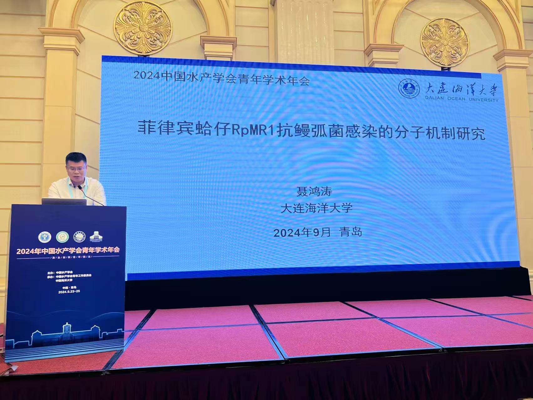 9月23日至25日,2024年中国水产学会青年学术年会于青岛圆满召开。会议由中国水产学会、中国水产学会青年工作委员会及中国海洋大学联合举办,中国工程院院士麦康森、包振民、陈松林、薛长湖等知名专家作为主会场嘉宾出席,进行了精彩演讲。花都影视 教师聂鸿涛教授带领团队研究生参加了本届年会,并作口头报告。