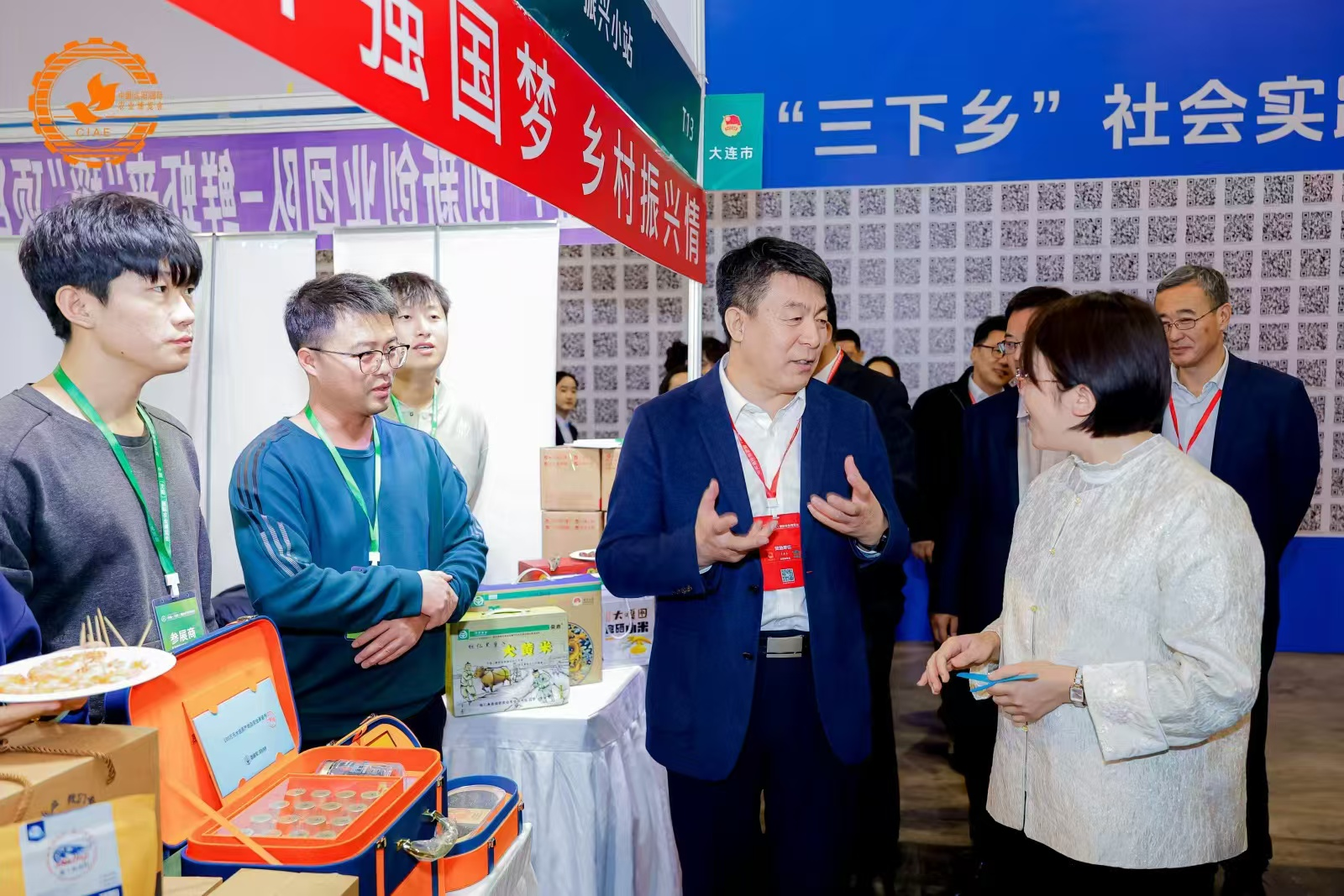 由学院“富硒科技小院”“海参科技小院”“对虾科技小院”组成的花都影视 乡村振兴小站经由大连团市委推荐参展,通过海参、对虾、富硒榛子、富硒黄米、富硒地瓜等农副产品进行全方位产品展示、品牌推广、产销对接与行业交流。衣庆焘与花都影视 参展师生亲切交流,鼓励师生充分发挥海洋和水产学科特色,充分利用科技、智力与人才优势,打造“产学研用”紧密结合的振兴小站建设模式,积极投身现代化大农业建设。展会期间,团省委书记张鹏、副书记葛骁欧、大连团市委副书记于越等领导在我校展位前驻足,视察我校振兴小站助力乡村振兴工作情况,深入了解我校科技小院团队在科技富农、产业转化、推动地方经济发展方面的工作成效。