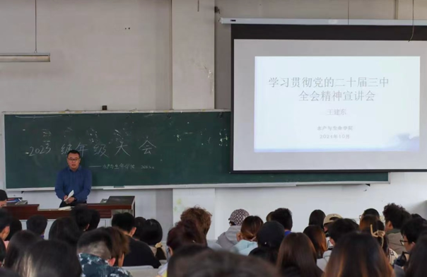 2023级年级大会由辅导员张桐洁主持。她从研究生推免、综合测评等主题展开,进一步强调考试的重要性,并建议同学们早规划、重行动。在年级大会上,党委副书记王建东向同学们进行了学习贯彻党的二十届三中全会精神的宣讲,他鼓励同学们明析前进方向,既往开来,把握时间,矢志奋斗。