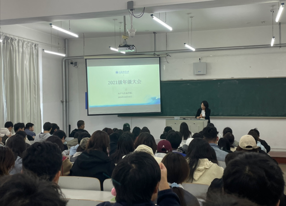 2021级辅导员孟丽婷在年级大会上,对于安全问题再三强调,提醒同学们预防电信诈骗、网络安全、人身安全等问题;提醒毕业生图像信息采集按时参加,按照要求着装;叮嘱考研同学留意研招网通知并及时进行考研报名和确认,关注自己的学习进度,合理安排时间。最后,她希望同学们以更加坚定的信念去追求自己的梦想和目标。