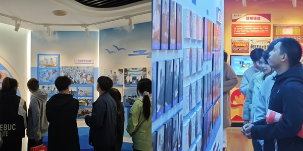 随后,讲解员以时间为轴,从溯厥渊源,七秩风华;踔厉奋发,立德树人;勇毅前行、筑梦深蓝三个篇章,对学校的诞生背景、历史发展、师资力量等方面进行详细的介绍,学生们了解了学校从创办初期的艰辛到如今的繁荣发展,每一步都凝聚着前辈们的智慧与汗水,为成为大海大的一员而感到自豪。