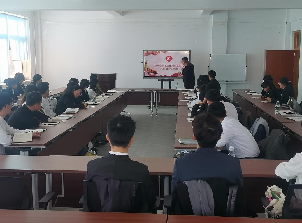 学院党委副书记王建东紧紧围绕党的二十届三中全会精神,从多个方面进行了深入解读,详细阐述了进一步全面深化改革的鲜明主题、核心要义和历史意义。同时,他还结合花都影视 的工作实际,对如何在工作中贯彻落实全会精神提出了具体的建议和要求,使学生明确了今后的工作方向和重点。