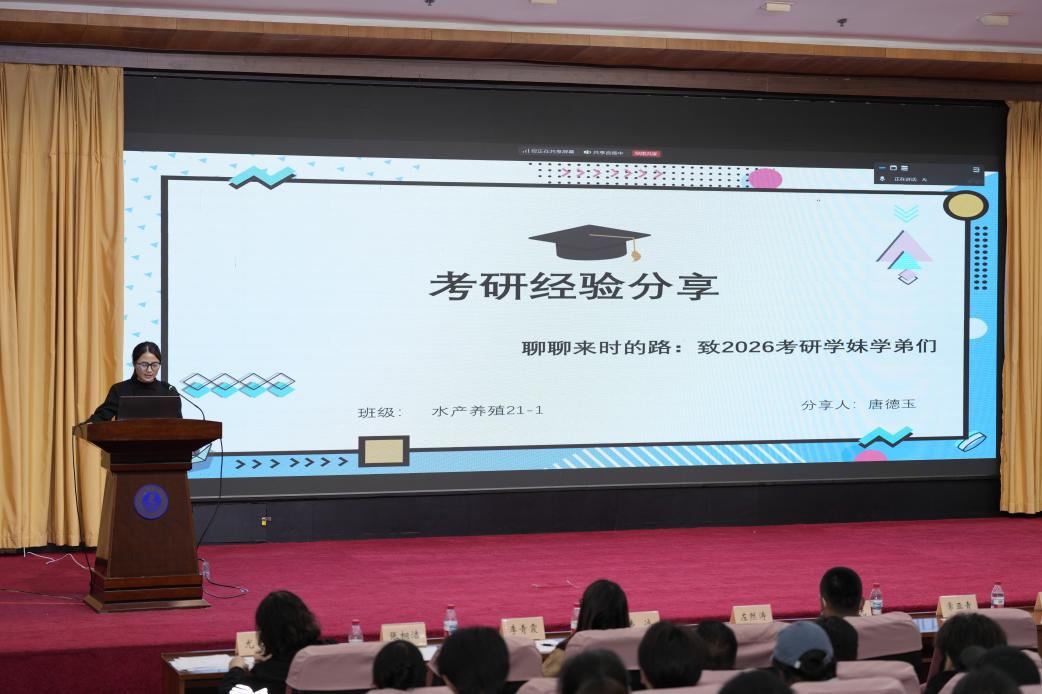 会上,水产学科负责人、重点实验室主任常亚青教授深入剖析考研对个人成长和学术发展的深远影响;生物育种系教师韩冰从心态调整和应对压力的角度,为大家分享如何调整心态,应对压力;研究生学院招生就业办公室副主任白伟光为学生详细解读全国硕士研究生招生政策;生物育种系主任秦艳杰围绕考研专业课复习方法,为学生传授专业课备考策略;2021级优秀学子唐德玉以亲身经历,分享考研备考期间的复习方法、时间规划及心得体会。