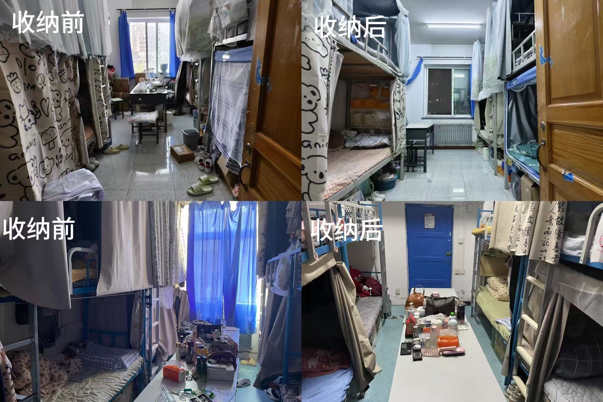 二、优环境。强化设施保障,激发内生动力。针对学生反映的“储物空间不足”问题,学院精准施策,为学院121间6人寝、8人寝统一配发收纳袋191个,优化物品摆放空间;开展“断舍离”闲置物品回收活动,累计清理衣物350件,持续推动寝室空间高效利用;样板引领,打造“退伍兵示范寝室”,实现“一间好宿舍,影响一层楼”的示范效应。