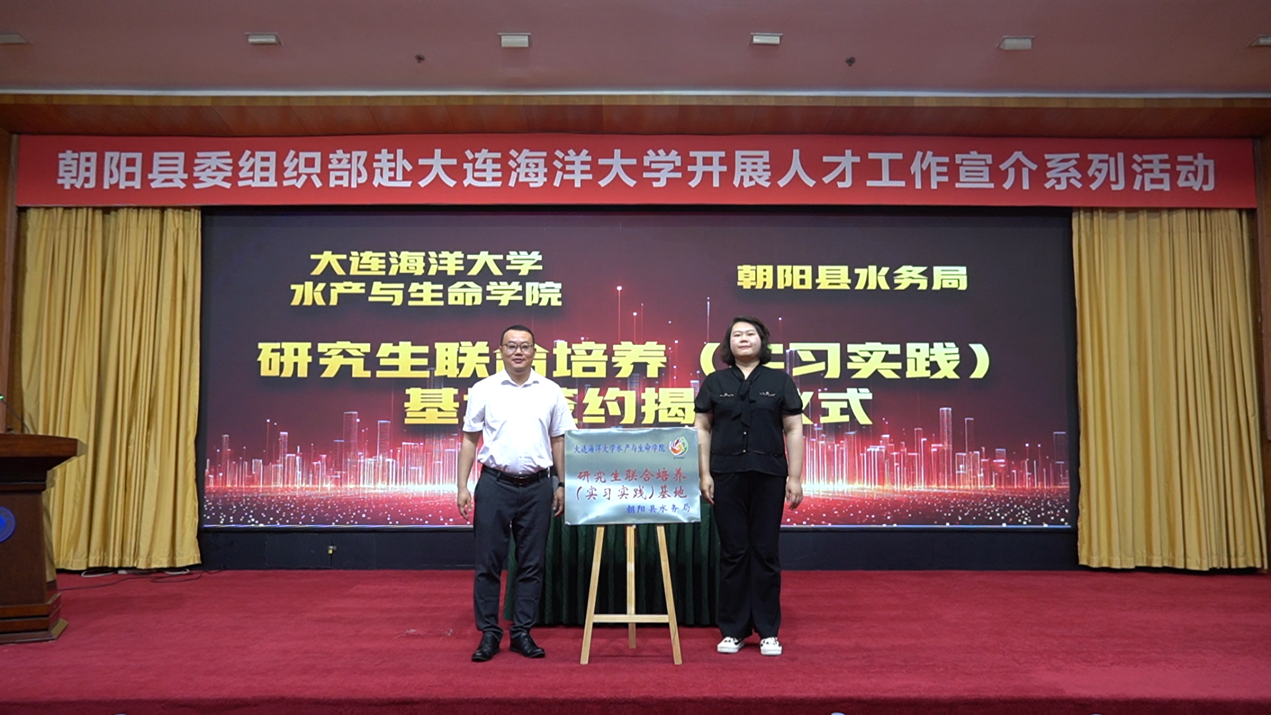 花都影视 党委副书记王建东与朝阳县委组织部副部长付馨莹共同为研究生联合培养(实习实践)基地揭牌,标志着校地合作迈入新阶段。