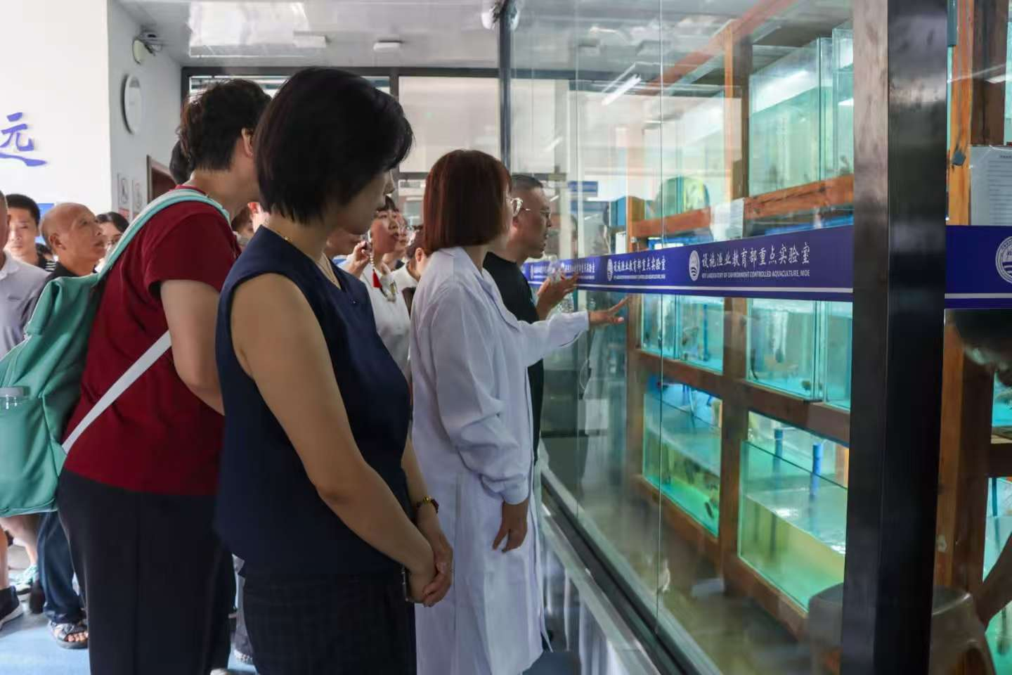 会后,学院领导、辅导员与志愿者带领家长依次参观了水产养殖学国家级实验教学示范中心、水产苗种繁育平台、设施渔业重点实验室、北方水产种质遗传育种重点实验室,以及辽宁省海洋牧场工程技术研究中心。漫步于各个科研空间,家长们得以近距离触摸学院厚重的科研底蕴,沉浸式感受浓郁的学术气息。精密先进的实验设备有序陈列,广阔多元的科研平台尽显实力,还有那秉持匠心、孜孜以求的教师团队,每一处细节都让家长们眼中的期许越发真切,心中对孩子们未来在这片沃土上的学习成长,也充满了坚定的信心与美好的憧憬。