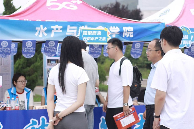 清晨六时,晨曦初破,迎新工作组的师生就到达了迎新点,师生通力合作、精心筹备,以最饱满的热情等待新生们的到来。迎新志愿者们为新生提供了全方位的周到服务,协助新生顺利完成手续办理、物资领取以及宿舍安排等工作,分工明确,有条不紊。学院为每一位新生准备了定制手提袋、学院宣传折页、矿泉水等伴手礼,为新生们留下研途第一份美好记忆,尽显水产温度。