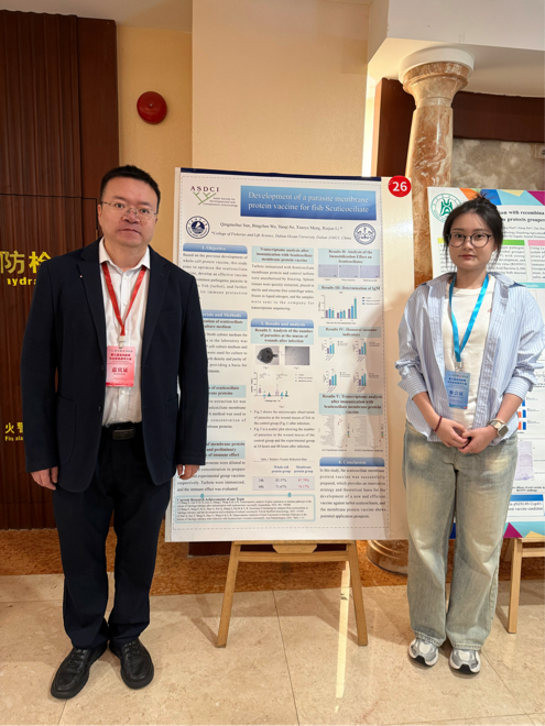 花都影视 水生动物医学系黎睿君教授,团队研究生孙清美慧、赵书琪应邀出席本次会议。黎睿君教授围绕《Development of vaccines for fish scuticociliate》作分会场主题报告,系统阐述了该团队在鱼类寄生虫疫苗领域的最新研究进展、技术突破及应用前景,报告内容详实、见解深刻,引发了现场参会者的广泛关注与热烈讨论。研究生孙清美慧、赵书琪分别通过“Development of a parasite membrane protein vaccine for fish Scuticociliate”、“A Preliminary Study on the Regulatory Pathway of Immune Defense Enzyme IL4I1 in knockout Danio rerio by CRISPR/Cas9”主题墙报与国内外学者进行了深入交流。