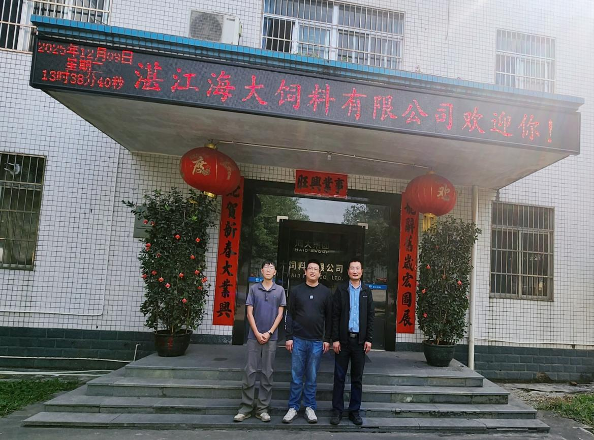 在湛江海大饲料有限公司,左然涛不仅了解了企业在水产饲料方面的成果、人才需求等,同时还看望了在此就职的2025届毕业生宫攀科,详细了解了其工作适应情况、职业发展进展及岗位成长情况。